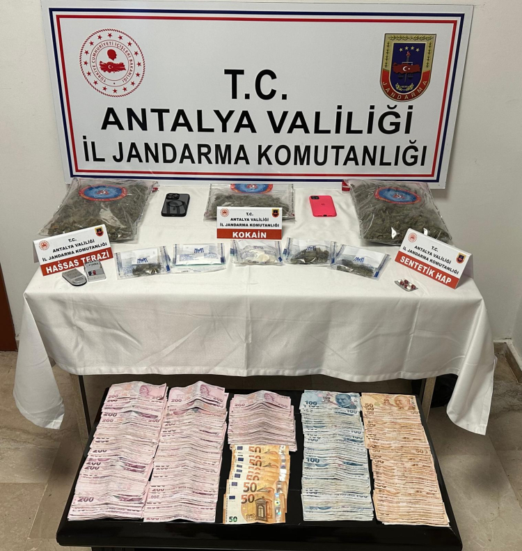 Gözaltına alınan Ü.K'nin aracında yapılan aramada, 6,5 kilogram skunk, 1040 gram kokain, 4 uyuşturucu hap, hassas terazi ile uyuşturucudan elde edildiği değerlendirilen bir miktar para ele geçirildi.