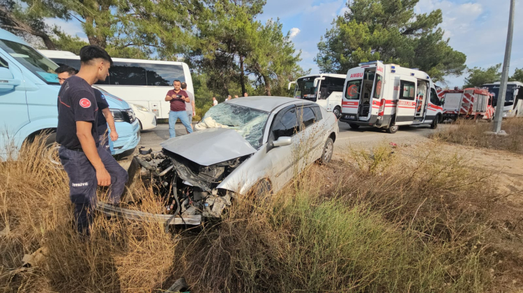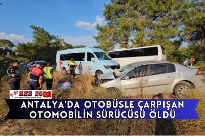 Antalya'nın Manavgat ilçesinde otobüsle çarpışan otomobilin sürücüsü yaşamını yitirdi.