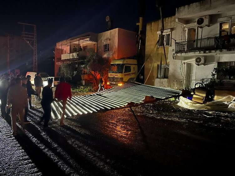 Kalkan Mahallesi'nde oluşan hortumdan dolayı zeytin ağaçları, dükkanlar, ev ve iş yerleri zarar gördü.