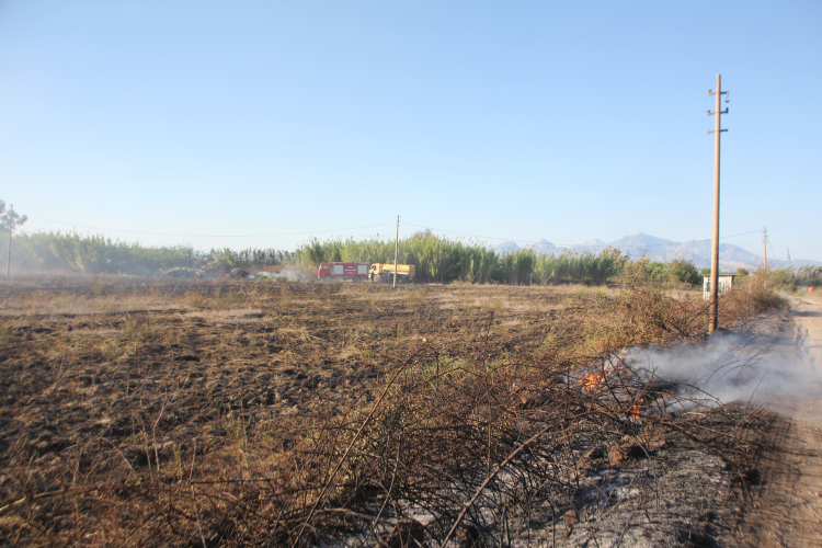 Belek Mahallesi Kelebek Caddesi Acısu nehri kenarında bulunan sazlık alanda yangın çıktı.