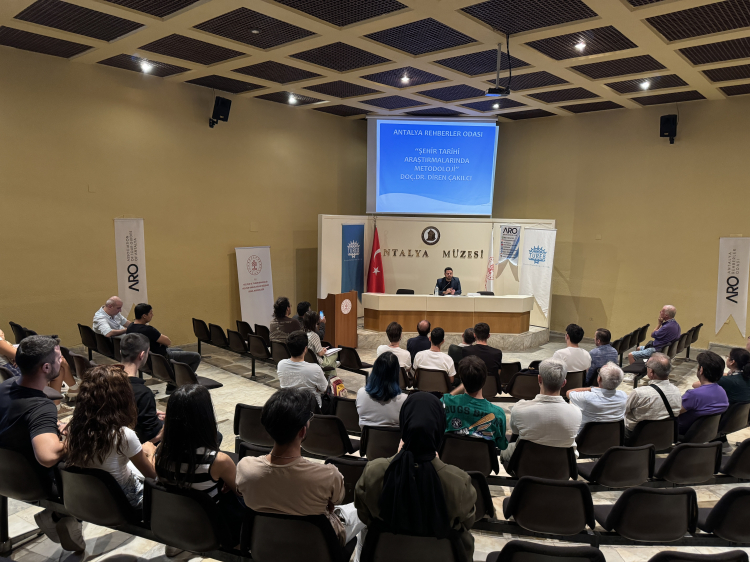 Antalya'da turist rehberlerinin şehir tarihi araştırmalarında doğru yöntem ve kaynaklardan faydalanmaları, bilimsel bir bakış açısı kazanmalarını desteklemek amacıyla "Şehir Tarihi Araştırmalarında Metodoloji" konferansı düzenlendi.