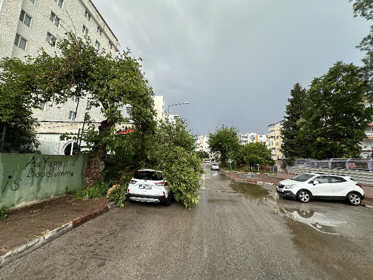 Fırtına nedeniyle bazı ağaçlar araçların üzerine devrildi, işletmeler uçuşan şemsiye ve tezgâhlarını tutmaya çalıştı.
