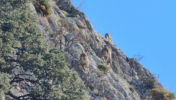 Antalya'nın Kaş ilçesinde dağ keçileri, bir vatandaşın cep telefonu kamerasıyla görüntülendi.
