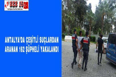 Antalya'da jandarma ekiplerince geçen hafta düzenlenen operasyonlarda çeşitli suçlardan aranan 162 şüpheli yakalandı.