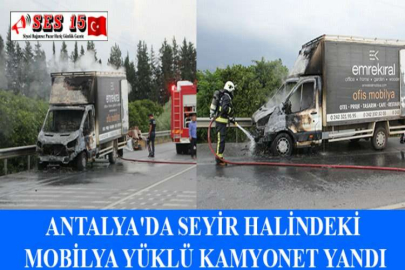 Antalya'nın Manavgat ilçesinde seyir halinde alev alan mobilya yüklü kamyonet kullanılamaz hale geldi.