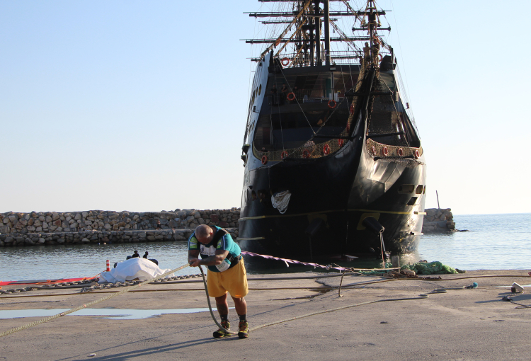 "Havanın bugün rüzgarsız olması da büyük bir şanstı. Denizin üzerindeki ağırlık değil, suyun akıntısı önemlidir. O yüzden rüzgarında hiçbir katkısı olmadan tamamen kendi gücüyle yapması da ayrı bir başarıdır. Kendisini tebrik ediyorum. 1300 tonluk tekne tamamen çelikten yapıldı. Bu tekneyi de özel kılan konu geminin günübirlik turizm amaçlı eğlence ve korsan gemisi kategorisinde dünyada tek olması. O yüzden bizim gemimizi çekmesi de bize ayrı bir gurur verdi."