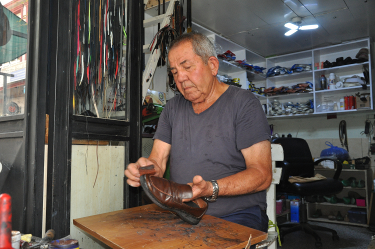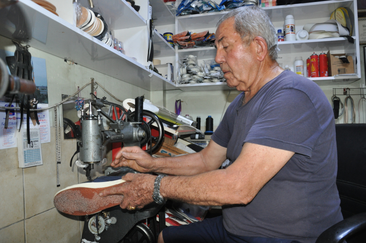 Mersin'in Silifke ilçesinde 73 yaşındaki ayakkabı imalatçısı ve tamircisi Mehmet Evlice, babasının yanında çıraklığa başladığı dükkanda 64 yıldır mesleğini sürdürüyor.