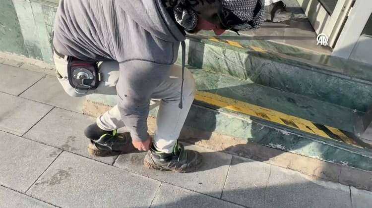 İnşaat işçisi banka şubesine çamurlu ayakkabısını çıkarıp girdi