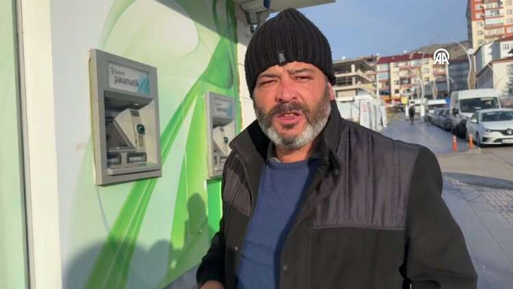 Yozgat'ta inşaat işçisi Soner Keskin, kirlenmesin diye banka şubesine çamurlu ayakkabısını çıkardıktan sonra girdi.