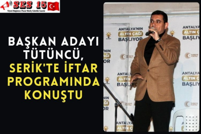 Seçimlerde destek isteyen Tütüncü, "Allah izin verirse ramazanın sonunda bir değil, iki bayramı hep birlikte, hep beraber yaşayacağız. Buna yürekten, gönülden inanıyorum. 31 Mart seçimleriyle hemşehrilerimiz hizmeti tercih edecekler. İnşallah Veli hocamızla birlikte Serik'te bambaşka bir dönemi başlatacağız." diye konuştu.