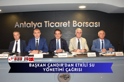 Antalya Ticaret Borsası (ATB) Başkanı Ali Çandır, kentte derinleşen su sorunu yaşandığını ve etkili su yönetimine ihtiyaç duyulduğunu belirterek, ürün deseni planlanması, tamamen kapalı devre sulama sistemlerine geçilmesi ve su hasadının yatırım planlamasına alınması için çağrıda bulundu