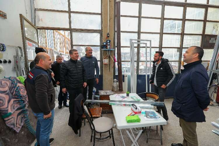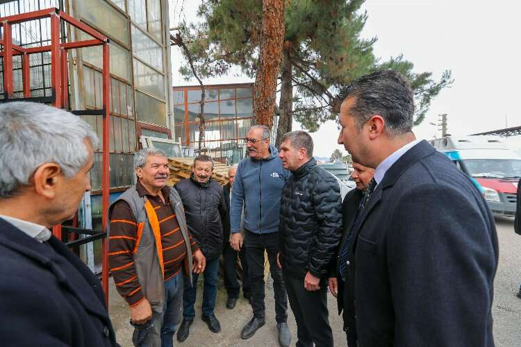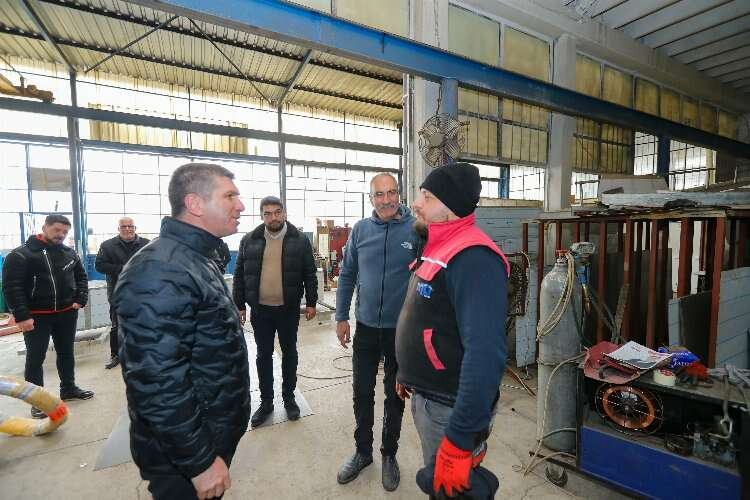 Ziyarette Yeni Sanayi Sitesi esnaflarıyla tek tek görüşen Başkan Ercengiz, 3. dönemde yapacakları projeleri anlattı.