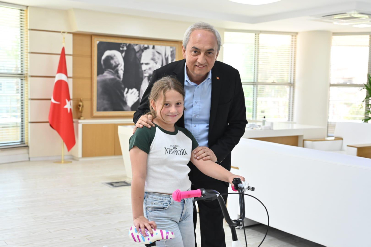 Başkan Kocagöz, küçük kızı öperek karşıladı. Sosyal medya hesaplarından güzel sözlerle kendisine destekte bulunan Seher Gündüz’e teşekkür eden Başkan Kocagöz, “Ben cezaevindeyken sen bana dua ettin, ben çıktım” diyerek küçük kıza pembe bisiklet hediye etti. Başkan Kocagöz’ün bisiklet sürprizine çok sevinerek, teşekkür eden Küçük Seher, pembe bisikletini sürerek başkanlık makamından ayrıldı.