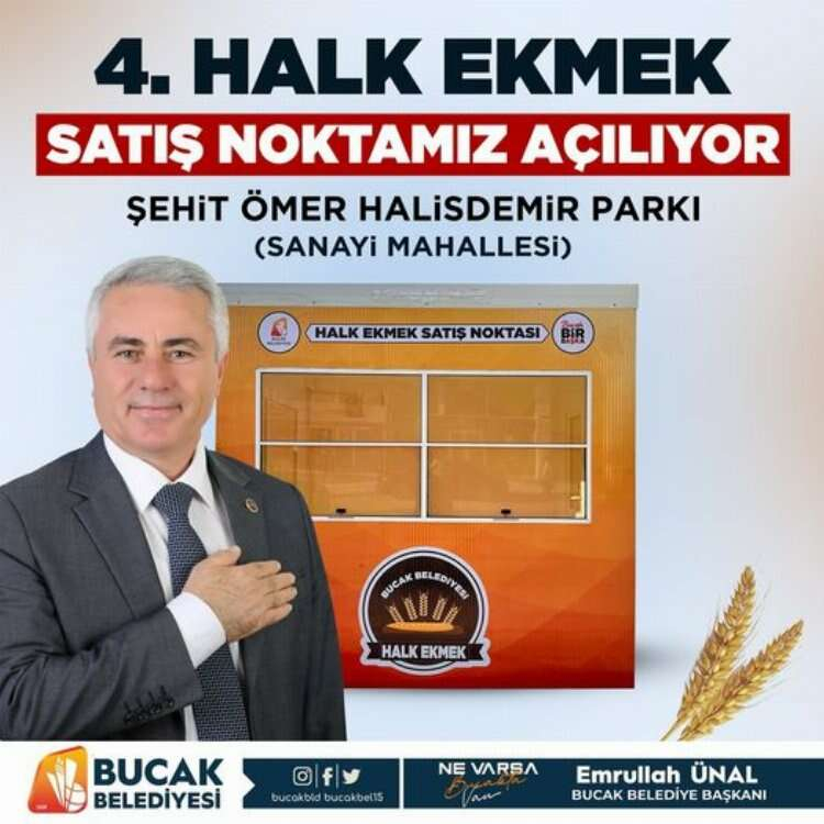 Başkan Ünal paylaşımında Şu sözlere yer verdi: 4’üncü Halk Ekmek satış noktamızı Sanayi Mahallesi Şehit Ömer Halisdemir parkında açtık. Yarın ekmek satışımıza başlıyoruz.