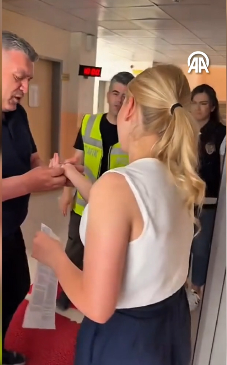 Başkan Sıbıç, penseyle adayın kolundaki bileziği keserek çıkardı.