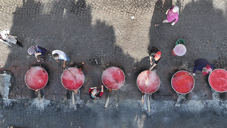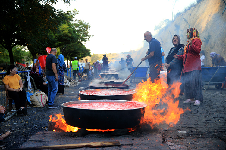 Salça kaynatmak isteyenler belediyeden randevu alarak kazan, kürek, tuz ve domateslerin yıkanıp çekilmesi gibi işlemlerini ücretsiz yaptırıyor, belirlenen alanlarda geleneksel yöntemlerle kışlık salçalarını hazırlıyor.
