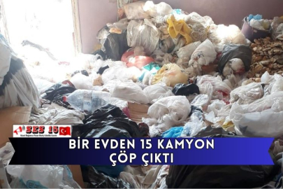 Görevlilerin yaptığı çalışmayla evden 15 kamyon çöp ve çeşitli atık çıkardı.
