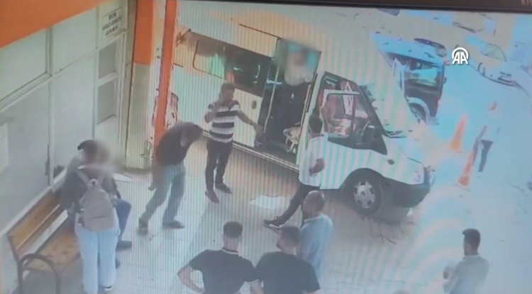 Yolcu ve şoför arasında yaşanan arbede güvenlik kamerasınca kaydedildi