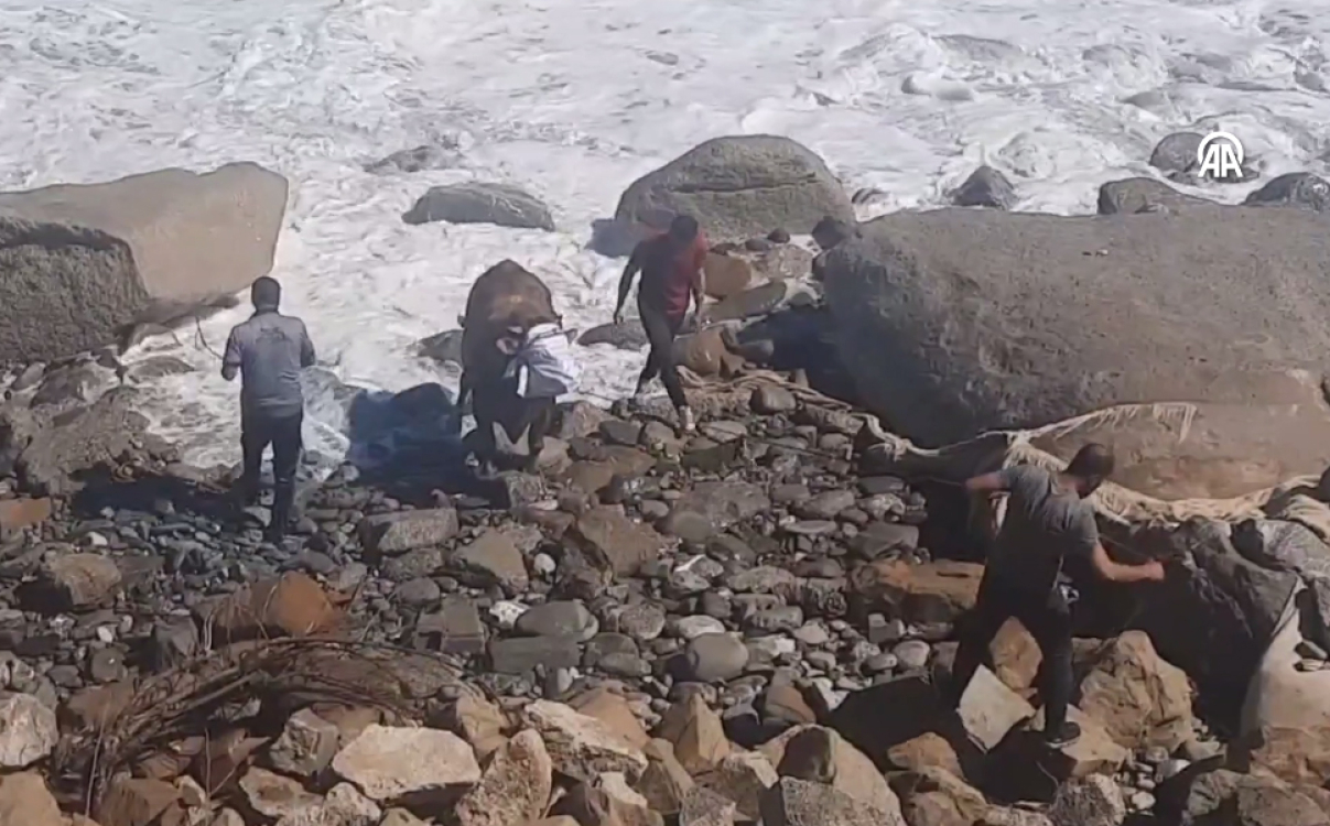 Dalgaların etkisiyle tekrar karaya çıkan boğa, ihbar üzerine bölgeye gelen itfaiye ekiplerince yakalandı.