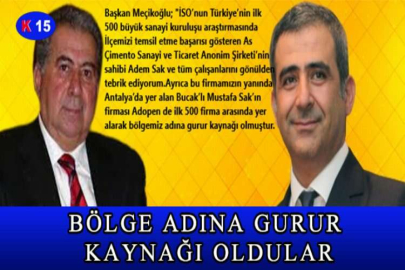 2020 yılının zor ekonomik şartlarına rağmen Bucak’lı sanayicilerin üretmeye ve ülke ekonomisine katkı sunmaya devam ettiğini kaydeden Başkan Meçikoğlu, “İSO’nun Türkiye’nin ilk 500 büyük sanayi kuruluşu araştırmasında İlçemizi temsil etme başarısı gösteren As Çimento Sanayi ve Ticaret Anonim Şirketi’nin sahibi Adem Sak ve tüm çalışanlarını gönülden tebrik ediyorum. Ayrıca bu firmamızın yanında Antalya’da yer alan Bucak’lı Mustafa Sak’ın firması Adopen de ilk 500 firma arasında yer alarak bölgemiz adına gurur kaynağı olmuştur. Pandemi sürecinde tüm zorluklara rağmen üretime ve istihdama katkı sunmaya devam eden Bucak sanayisi, inşallah salgının tamamen sona ermesi ile birlikte katma değeri yüksek üretimlerle ülkemiz ekonomisi değer katmaya ve yeni başarı hikayeleri yazmaya devam edecektir” ifadelerini kullandı.