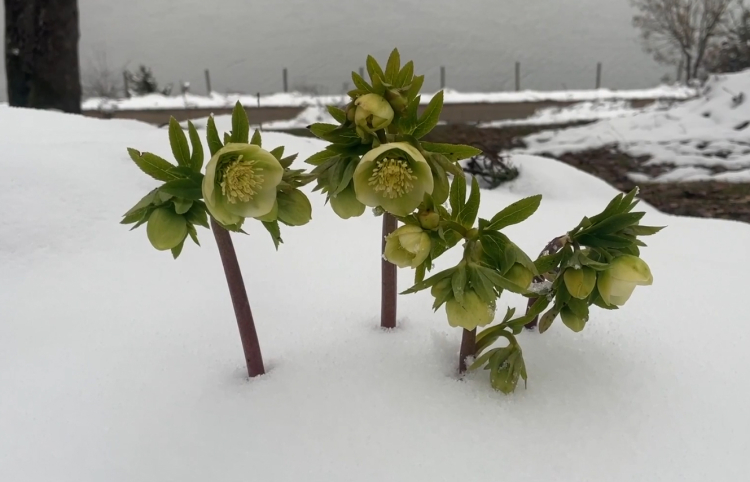 Göl çevresindeki bazı çiçeklerinde kar örtüsüyle kaplandığı görüldü.