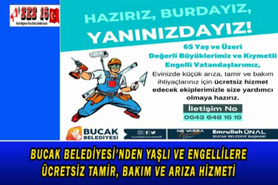 Bucak Belediyesi 65 yaş üzeri yaşlılara ve engellilere yönelik evlerinde oluşabilecek arızalara karşı ücretsiz tamir, bakım ve arıza hizmeti verecek. Bucak Belediyesi sosyal belediyecilik anlayışı içerisinde yeni bir projeye daha imza atıyor. Bucak ilçesi sınırları içerisinde yaşayan 65 yaş üstü yaşlı vatandaşlara ve engellilere yönelik evlerinde oluşan elektrik problemleri, küçük tesisat sorunları ve bakım gerektiren işler için belediye sorunlara çözüm olacak. Bucak Belediye Başkanı Emrullah Ünal “Geleceğimizin teminatı gençlerimiz, geçmişimizin sigortası ise yaşlılarımız. Gençlerimiz ve bizlere her zaman rehber olan yaşlılarımızın her zaman yanlarında olmaya devam edeceğiz. Yaşlılarımız ve engellilerimizin evlerinde oluşan elektrik problemleri, küçük tesisat sorunları ve bakım gerektiren ve benzeri işler için Bucak Belediyesi tarafından sorunlarına yardımcı olunarak ücretsiz olarak çözüme kavuşturmaya çalışacağız” dedi. 65 Yaş üstü yaşlılar ve engelliler ücretsiz tamir bakım ve arıza hizmetleri için Bucak Belediyesi Kültür ve Sosyal İşler Müdürlüğüne başvuracakları gibi 0 543 648 15 15 numaralı telefondan ya da Whatsapp yolu ile iletişime geçmeleri gerekiyor.