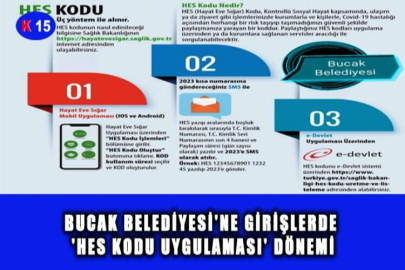 İçişleri Bakanlığı Genelgesi ile Kovid-19 salgınıyla mücadele kapsamında kamu kurum ve kuruluşlarına girişte zorunlu hale getirilen Hayat Eve Sığar kodu uygulaması (HES) Bucak Belediyesi tarafından da uygulanmaya başlandı.