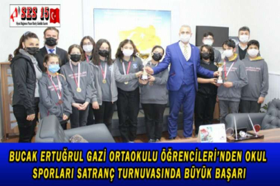 Bucak Ertuğrul Gazi Ortaokulu öğrencileri, Burdur Okul Sporları Satranç Turnuvasında yıldızlar kız satranç il birinciliği ve küçükler genel satranç il üçüncülüğü kazanarak iki kupa ile büyük bir başarıya imza attılar. Bu başarı ile bölge turnuvalarına çıkmaya hak kazandılar. Öğrenciler Bucak İlçe Milli Eğitim Müdürü Neşet Yazar'ı makamında ziyaret ederek başarılarını paylaştılar. Neşet Yazar "Bizi gururlandırdılar. Bizi en iyi şekilde temsil ettiler. Öğrencilerimizi başarılarından dolayı tebrik ediyorum. Emeği geçen Ertuğrul Gazi Ortaokulu Müdürü Ayhan Ören, Beden Eğitimi öğretmenleri Emine Ebru Fidan, Murat Kaya ve satranç kulübü öğretmeni Fatih Sağlam'a teşekkür ediyor başarılarının devamını diliyorum” dedi.