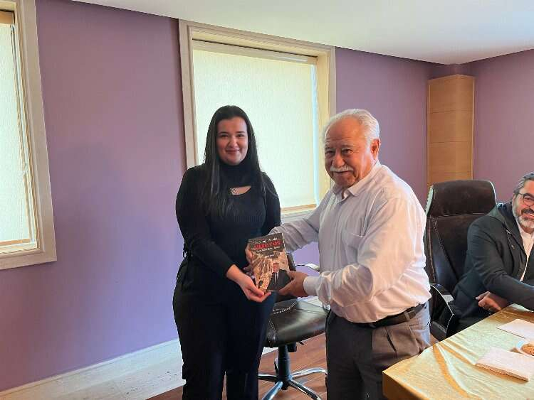 Ziyaret sonunda İş İnsanı Mehmet Cadıl bilgi tecrübe ve deneyimlerinin yazıldığı kitabını imzalayarak öğrencilere hediye etti.
