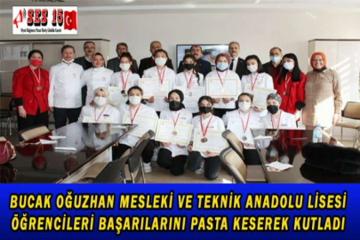 Bucak Oğuzhan Mesleki ve Teknik Anadolu Lisesi Yiyecek İçecek Hizmetleri Bölümü öğrencileri, 18.İstanbul Uluslararası Gastronomi Festivali Dünya Şefler Birliği WACS yarışmasına katılmış ve toplamda 6 Altın, 3 Gümüş, 2 Bronz Madalya alarak büyük bir başarı elde etmişlerdi. Elde edilen bu başarıyı okulda pasta keserek kutladılar. Öğrencilerin mutluluklarına Bucak İlçe Milli Eğitim Müdürü Neşet Yazar ve Ticaret ve Sanayi Odası Başkanı Hasan Yalçın Meçikoğlu da ortak oldular. Hoş sohbet ortamında geçen kutlamada, yarışmaya katılan öğrenciler oradaki anılarını paylaştılar. Hasan Yalçın Meçikoğlu " Öğrencilerimizin büyük bir cesaret örneği gösterip yarışmaya katılmaları bile çok güzel. Daha büyük başarılara imza atacaklarına da eminim. Onları kutluyor başarılarının devamını diliyorum. " dedi. İlçe Milli Eğitim Müdürü Neşet Yazar " Öğrencilerimiz bu başarıyla göğsümüzü kabarttılar. Yüzlerinde bir şeyi başarmış olmanın verdiği mutluluğu görmek bizi de ziyadesiyle memnun ediyor. Çok çalıştılar, başardılar. Onlara her zaman destek olacağız. Emeği geçen herkesi tebrik ediyor, başarılarının devamını diliyorum. " dedi.