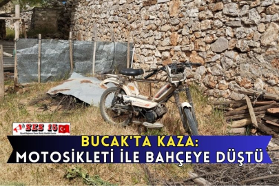 Burdur'un Bucak İlçesinde seyir halinde olan motosiklet, sürücüsünün direksiyon hakimiyetini kaybetmesi sonucu duvarı aşarak evin bahçesine düştü.