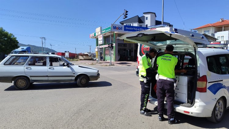 Polis Ekipleri kaza mahallinde incelemede bulundu.