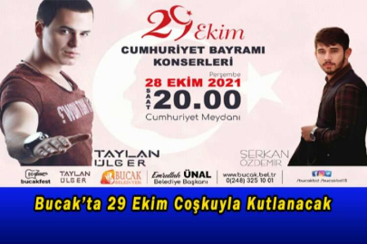 Bucak Belediyesi tarafından düzenlenen 29 Ekim Cumhuriyet Bayramı etkinlikleri kapsamında, Taylan Ülger ve Serkan Özdemir konser verecek .Bucak Belediyesi Cumhuriyet’in 98’inci yılını coşkuyla kutlamaya hazırlanıyor. Kutlama ile ilgili açıklama yapan Başkan Emrullah Ünal “ 28 Ekim Perşembe günü akşamı Saat:19:30’da İlçe Emniyet Müdürlüğü önünden başlayarak Fener Alayı Yürüyüşümüzü yapacağız. Ardından da Cumhuriyet Meydanın da vatandaşlarımız ile birlikte Cumhuriyet Kutlamamızı gerçekleştireceğiz. Kendi oluşturduğu “Müziğin Efsaneleri” formatıyla Türkiye’nin ünlü isimleriyle programlar yapan, Hekimoğlu dizisinde oyunculuğu ile büyük ilgi toplayan. “Yüreğime Ektim Seni”şarkısı ile kalpler de yer edinen, genç sanatçıların idol olarak kabul ettiği Taylan Ülger Konseri ve Bucak’ımızın sevilen sesi Serkan Özdemir bizlerle birlikte olacak. Tüm halkımızı hem cumhuriyet coşkumuzu birlikte yaşamaya hem de konserlerimize davet ediyorum” dedi.