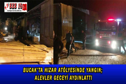BUCAK’TA HIZAR ATÖLYESİNDE YANGIN; ALEVLER GECEYİ AYDINLATTI