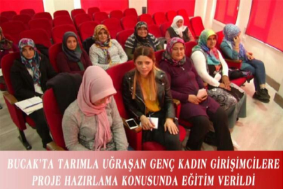 Gıda, Tarım ve Hayvancılık Bakanlığı’nın “Tarımda Genç Girişimci Kadınlar Güçleniyor” projesi ile yeni ve daha önce hiç denenmemiş fikirleri olan kadın çiftçiler istedikleri bir tarım alanında proje hazırlayıp hibe alabiliyor. Bucak Gıda Tarım ve Hayvancılık İlçe Müdürlüğü tarafından da Bucak ve köylerinde çiftçilikle uğraşan kadınlardan proje için uygun şartları taşıyan 18 kadın eğitim proje hazırlama konusunda eğitim aldı.