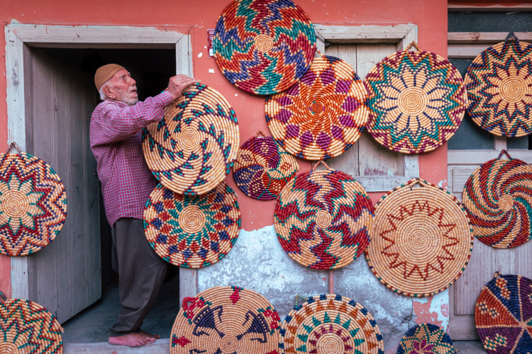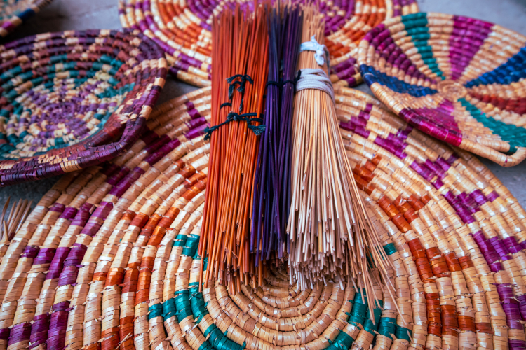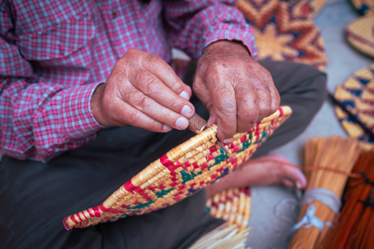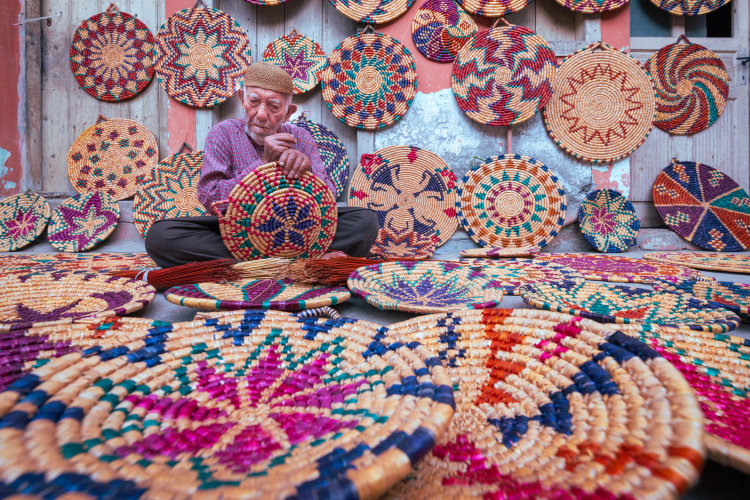 İlerlemiş yaşına rağmen hasır örücülüğünü devam ettiren Köleoğlu, hasat zamanı tarlalardan toplanan buğday saplarını kök boya yardımıyla renklendiriyor.