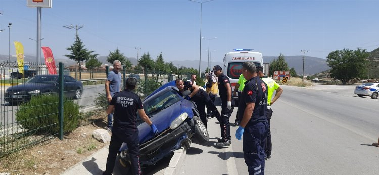 Burdur-Antalya Karayolu üzerinde seyir halinde olan otomobil direksiyon hakimiyetini kaybederek refüje çıktı.