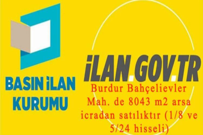 Basın İlan Kurumu’nun ilan portalı ilan.gov.tr’de yer alan ilana göre; T.C. BURDUR İCRA DAİRESİ Burdur İli Bahçelievler mah. de 8043 m2 arsa icradan satılıktır. Taşınmazın 1. Satış günü 10.06.2021 tarihinde saat 11:50’de BURDUR ADLİYESİ MÜZAYEDE SALONU - ADLİYE HİZMET BİNASI GİRİŞ KAT MERKEZ / BURDUR adresinde yapılacaktır. İlana dair detaylı bilgi Basın İlan Kurumu ilan.gov.tr adresinden alınabilir.