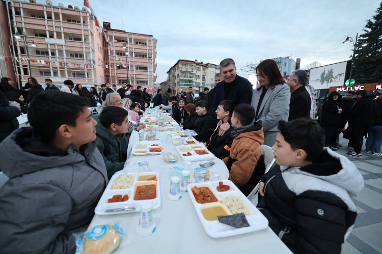 Konuşma yapan Burdur Belediye Başkanı Ali Orkun Ercengiz “Çok kıymetli hemşerilerim, sevgili öğrenciler, Öncelikle, hepimizin bu mübarek Ramazan ayında tuttuğumuz oruçların, kıldığımız namazların ve yaptığımız ibadetlerin kabul olmasını diliyorum. Bugün burada, 11 yıldır geleneksel hale getirdiğimiz ve Gönül Sofrası adını verdiğimiz iftar buluşmamızda bir aradayız. Sizler de bu güzel birlikteliğe eşlik ederek, aynı kazanda pişen yemeği paylaşmanın anlamını ve değerini bizlerle birlikte yaşıyorsunuz. Amacımız; birlik ve beraberlik içinde, aynı sofrada buluşarak hepimizin eşit olduğunu hissettirmek ve bu eşitlik anlayışıyla kaynaşmaktır. Biliyoruz ki herkesin evinde mutlaka bir lokma aşı vardır. Ancak bugün burada bizlerle olarak, dayanışmamıza destek verdiğinizi ve birlikteliğimizi daha da güçlendirdiğinizi hissediyoruz. Bunun farkında olarak sizlere en içten teşekkürlerimi sunuyorum. Ülkemiz zor zamanları mutlaka geride bırakacaktır. Hepimizin gönlündeki güzelliklerin gerçekleşmesini diliyor, bu vesileyle burada bulunan ve bizlerle olamayan tüm hemşerilerimize şükranlarımı sunuyorum. Rabbim ibadetlerimizi kabul eylesin, Ramazan ayınızı tekrar tebrik ediyorum. Ayrıca, özellikle gençlerimizi düşündüğümüz bir etkinliğimiz var. Bugün, 6 Mart gibi özel bir günü yaşıyoruz. Ulu Önder Mustafa Kemal Atatürk’ün Burdur’umuzu şereflendirdiği bu anlamlı gün vesilesiyle, gün içinde törenlerimizi gerçekleştirdik. Aynı zamanda, gençlerimizin büyük ilgi gösterdiği ve Burdur’da görmek istediği kıymetli sanatçımız Haluk Levent’i şehrimize davet ettik. Yarın, Cumhuriyet Meydanı’nda, Atatürk’ün Burdur’a gelişinin onuruna düzenleyeceğimiz Haluk Levent konserine hepinizi davet ediyorum. Yarın da bu meydanda hep birlikte olmayı diliyorum. Hayırlı iftarlar, afiyet olsun, iyi akşamlar!” dedi