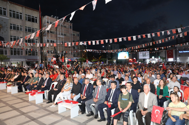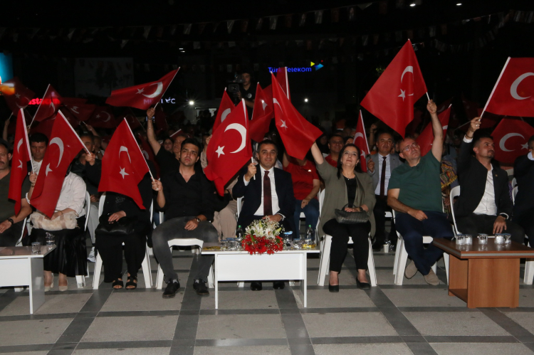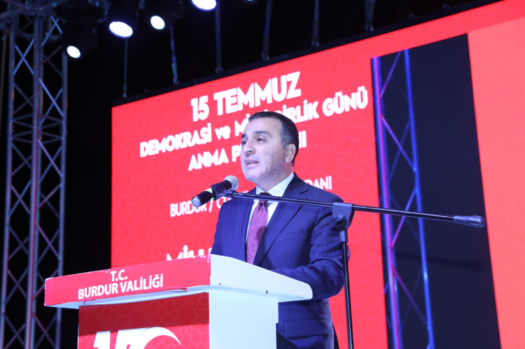 Vali Öksüz programda yaptığı konuşmada; “Bir 15 Temmuz akşamında yine “milli irade” aşkıyla hep birlikte meydanlardayız. Bugün, 8 yıl önce bir destan yazan Aziz Milletimizin demokrasi zaferini bir kez daha anmak, 15 Temmuz'u Unutmadığımızı, Unutmayacağımızı ve Unutturmayacağımızı göstermek, vatan, millet, devlet, bayrak uğruna gözlerini kırpmadan canlarını feda eden aziz şehitlerimizi bir kez daha yâd etmek, kahraman gazilerimize olan şükran duygularımızı sunmak üzere bir aradayız. Sözlerimin başında, Fetullahçı terör örgütü tarafından 15 Temmuz 2016 günü kalkışılan hain darbe girişimi sırasında, şanlı tarihimizin her döneminde olduğu gibi tarafını devletinden, milletinden, demokrasiden yana seçen siz aziz Burdurlu hemşehrilerimi bir kez daha en kalbi duygularımla selâmlıyorum. İstiklal ve istikbalimiz uğrunda canlarını feda ederek bu toprakları bizlere yurt yapan tüm şehitlerimizi ve ebediyete irtihal eden tüm gazilerimizi rahmet ve minnet duygularıyla anıyorum. Rabbim hepsinden razı olsun! Tarihin kırılma anları vardır. Gerçekleşen hadisenin insanların üzerinde bıraktığı tesir o denli büyük olur ki bir başka olay anlatılırken zaman tespiti o kırılma anlarıyla yapılır. Necip Türk milleti için 15 Temmuz 2016 tarihi bu nevi bir milat, bir mihenktir. Sureti haktan görünerek on yıllar boyunca kutsal değerlerimizi istismar etmekten çekinmeyen FETÖ’nün kamuflaj giymiş militanları, son ve akıl almaz bir cüretle bağımsızlığımıza kast etme teşebbüsünde bulunmuşlardır. Üç bin yıllık tarihimizde bize düşmanlık etme cesareti gösterebilenlerin bildiği ve fakat akıl tutulması yaşayan bu güruhun ön göremediği şey damarlarında Türk kanı taşıyan aslanların ve havsaların vatan uğruna can alıp can vermeye daima hazır olma hasletiydi. Cümle cihan bilir ki savaş Türk’ün düğünüdür. Şerefle ölmeyi, ayağında prangayla korkakça yaşamaya yeğ tutan milyonların, “Ölürsek cennet bizim, kalırsak devlet bizim” diyerek akın akın sokaklara dökülüşünü hatırlayın. Göklerin, yerin ve ikisi arasında bulunanların rabbine kavuşmak için kan kırmızı gaza meydanlarına koşanları hatırlayın. Dişine kan değen bozkurtların mertçe, yiğitçe çarpışmalarını hatırlayın. Bir kıvılcımdan ateş alıp volkana dönüşen ve şulesi cihanı yakan yürekleri hatırlayın. Hatırlayın ve Akif’in “Çiğnetmedi namusunu, çiğnetmeyecek” mısralarında taltif edilen neslin mensubu olmakla iftihar edin. Bu gafiller, emperyalist sahiplerinin teşvikiyle giriştikleri işgal planı deşifre olunca alel acele tankları sokaklara indirdiklerinde, henüz ordu milletle boy ölçüştüklerinin farkında değillerdi. Cumhurbaşkanımız Sayın Recep Tayyip ERDOĞAN’ın çağrısı üzerine, abdestini alarak meydanlara akın eden milyonlar, kontrollerini tamamen kaybeden darbeci müsveddelere güçlü bir şekilde haddini bildirdiler. O gece aralarında, yıllarını Terörle Mücadeleye adamış hemşehrimiz Özel Harekat Polisi Şehit Akif ALTAY’ın da bulunduğu 252 vatan evladı şehadetle, 2196 vatan sevdalısı ise gazilik payesiyle şereflendi. O meşum gecede vatan toprağının her köşesinde ayrı kahramanlık destanları yazıldı. Vatanımızın bölünmez bütünlüğünü, yüce milletimizin azim ve kararlılığı, milli birlik ve beraberliği bütün dünyaya bir kez daha gösterildi. Milli İradeyi Haykıran, Fedakarlıkla Direnen, Vatanı Canı Pahasına Koruyan, Hainlere Karşı Duran, Demokrasiye ve Milli İradeye Sahip Çıkan milyonlar o gece “Milletin Zaferini” 15 Temmuz destanını yazdılar. Cumhurbaşkanımız Sayın Recep Tayyip Erdoğan’ın dirayeti, milletimizin cansiperane gayretleri, şehit ve gazi olan vatan evlatlarının fedakârlıkları sadece yurt içinde değil yurt dışında da vatan toprakları üzerinde hesapları olanların hesaplarını bozmuştur. Heveslerini kursaklarında bırakmış, hain ve zavallı işbirlikçileri de zelil ve rezil olmuştur. Yurdun dört bir yanında olduğu gibi siz değerli Burdurlu hemşehrilerim de o gece; vatan sevgisinin, fedakârlığın, cesaretin, yiğitliğin, bir hilal uğruna şehadete yürümenin ne demek olduğunu bu meydana koşarak, darbecilere ve arkasındaki zihniyete bir kez daha gösterdiniz. Bu vatanın bir evladı olarak sizlere şükranlarımı sunuyor, önünüzde saygı ve minnetle eğiliyorum. Bakara suresi 249. ayette buyrulduğu üzere “Nice az topluluklar, Allah’ın izni ile nice topluluklara galip gelmiştir.” hükmüne iman eden koç yiğitler, şehadet makamında okunan selaların çağrısına koştular. Savaş uçaklarından, savaş helikopterlerinden atılan bombalarla göklerden ölüm yağarken, hayatının baharında taze fidanlar birer birer toprağa düşerken bu dehşet manzarası karşısında korkmaları beklenen milyonlar bırakın bir adım geriye gitmeyi sıranın bir an önce kendilerine gelmesi için namluların üzerine koşmaya başladılar. İman dolu göğsünü serhaddine siper eden, dillerinde dualar, kalplerinde sekine ile devletin bekasını candan aziz bilen kahramanların günümüzde de yaşadıklarını cihana ispat ettiler. Hilalin zafer gecesine dair öyle cesaret hikayeleri var ki hangisi anlatılsa diğerlerine haksızlık olur. F-16’ların hedefindeki Gazi Meclisimizde şehadeti bekleyenlerden tutun da şehadet emrine bila tereddüt itaat eden yiğitler yiğidi Ömer Halisdemir’e, lise ve üniversite eğitimlerini birlikte tamamladıktan sonra birlikte özel harekat polisi olan ve o gece birlikte şehit düşen Kübra Doğanay ve Cennet Yiğit’e, üç çocuğunu geride kalanlara emanet edip Atatürk Havalimanı yolunda tankların altında ezilerek Hakka yürüyen Türkan Türkmen’e, Ömrünü bu vatana adamış Özel Harekat Polisi Hemşehrimiz gururumuz Akif Altay’