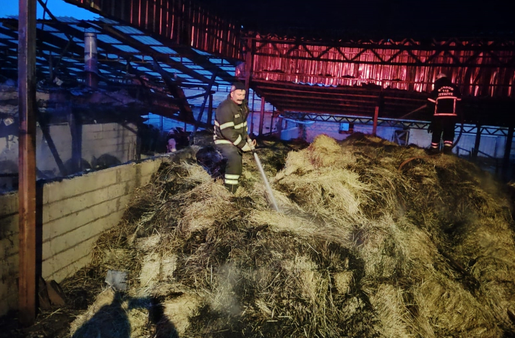 Edinilen bilgilere göre, Merkeze bağlı Büğdüz Köyü'nde Mustafa Sağlam'a ait samanlığın üstünde bulunan elektrik telinden çıkan kıvılcım sonucu yangın çıktı.