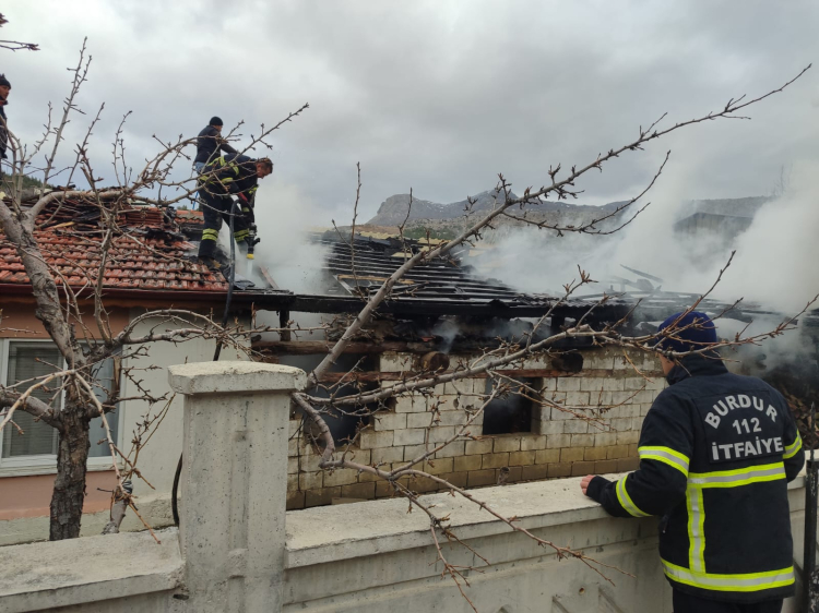 Burdur'da çıkan yangında samanlık, odunluk ve traktör hasar gördü.