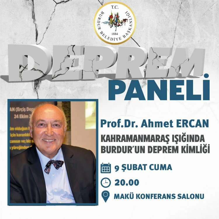 Burdur Belediye tarafından deprem uzmanı Prof. Dr. Ahmet Ercan Burdur’da Deprem Panelinde konuşacak.