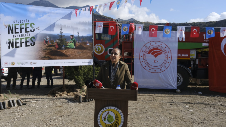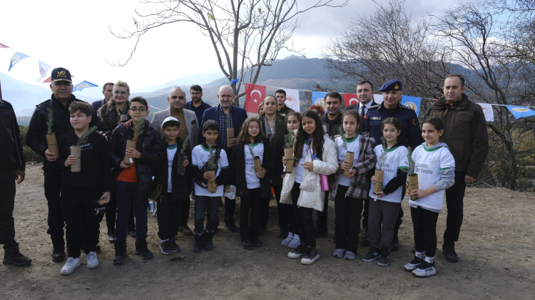 Vali Baydar Bilgihan yaptığı konuşmada, “Bu güzel sonbahar gününde son derece güzel, hayırlı bir iş için bir arada bulunuyoruz. İnşallah Milli Ağaçlandırma Günü'nde diktiğimiz fidanlar toprakta buluşsun ağaca, ormana dönüşsün temennisi ile başlamak istiyorum. Ağacın önemini herhalde bilmeyenimiz yoktur. Ekolojik dengenin sağlanmasında, tarımda, ekonomide, kültürel anlamda, sosyal anlamda bir can bulduğumuz, nefes bulduğumuz canlılar ve bu anlamda da doğanın önemli bir bütünleyicisidir. Ağaç dikme noktasına baktığımız zaman aslında insanoğlu var olduğundan itibaren hep bu mücadelenin içerisinde, hep bu kavganın ve kaygının içerisinde olmuş. Bugün de aslında bizler de geleceğe nefes insanlığa nefes diyerek bu kaygıyı azaltmak için çocuklarımıza daha güzel bir gelecek miras bırakmak ve daha iyi şartlarda yaşayabilmek için bir araya gelmiş bulunuyoruz. 2019 yılından itibaren Cumhurbaşkanımız Sayın Recep Tayyip Erdoğan'ın himayelerinde Tarım ve Orman Bakanlığı, Orman Genel Müdürlüğümüzün organizasyonunda bütün illerimizde ve ilçelerimizde Milli Ağaçlandırma Günü etkinlikleri kapsamında fidanları toprakla buluşturuyoruz. Yaptığımız etkinlik aslında bugün başlayan, bugün oluşan bir etkinlik değil. Geçtiğimiz yüzyıllarca var olan mücadelenin bundan sonraki süreçte de var olan ekolojik dengeyi bu anlamda sağlayabilme mücadelesinin bir parçası olarak daha kurumsal bir hale gelmiş durumda. Geçtiğimiz 5 yıl içinde 37.7 milyon fidan ülkemizin topraklarıyla buluşmuş durumda ve İlimizde de 81.000 adet fidan toprakla buluştu. Bugün itibariyle ilimizin bütün ilçelerinde 8.850 adet fidan, İlimizde ve ilçelerimizde yine toprakla buluşmuş olacak. Bu saat itibariyle Türkiye'nin her yerinde, bütün ilçelerde, bütün şehirlerde herkes bizler gibi işte bu güzel etkinlikte buluştuk. Dolayısıyla bizler diyoruz ki, ağaç geleceğe nefes, insanlığa nefes, aynı zamanda geleceğe de bir mirastır. Peygamber Efendimiz bir hadis-i şerifinde diyor ki; “elinde bir fidan varsa, kıyametin kopacağını bilsen dahi o fidanı toprakla buluştur.” Dolayısıyla hepimizin görevi, işte bu iklim değişikliğinin etkileriyle mücadele etmekte, toplumu ve aynı zamanda çevreyi korumakta, hayvanlara, canlılara gölge olması için, sığınak olması için ve tabi ki bizim için daha yaşanabilir bir dünyada bu etkinliklerin dışında da her zaman bu hassasiyeti göstermektir. İnşallah, dediğim gibi yavrularımızın da elleriyle diktiğimiz bu fidanlar, ağaçlara ve ormanlık alanlara dönüşmüş olur. Etkinlikte buluşan herkese, bu anlamda gayret gösteren bütün kurumlarımıza, orman teşkilatımıza çok teşekkür ediyorum” dedi.