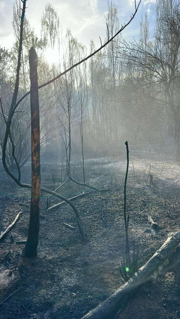 Soğutma çalışmasının yapıldığı bölgede, yaklaşık 40 dönümlük arazideki ağaçlar zarar gördü.