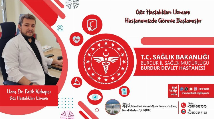 Konuyla ilgili olarak Burdur Devlet Hastanesi tarafından sosyal medya üzerinden yapılan paylaşımda; “Göz Hastalıkları Uzmanı Dr. Fatih Kebapçı hastanemizde göreve başlamış olup, alanında uzman hekimler ile kadromuz güçlenmeye devam etmektedir. Hasta kabulüne başlayan doktorumuza başarılar diler, İlimiz ve hastalarımız için hayırlı olmasını temenni ederiz” denildi.