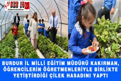 BURDUR İL MİLLİ EĞİTİM MÜDÜRÜ KAKIRMAN, ÖĞRENCİLERİN ÖĞRETMENLERİYLE BİRLİKTE YETİŞTİRDİĞİ ÇİLEK HASADINI YAPTI