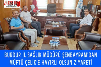 BURDUR İL SAĞLIK MÜDÜRÜ ŞENBAYRAM’DAN MÜFTÜ ÇELİK’E HAYIRLI OLSUN ZİYARETİ