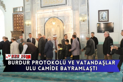 Burdur protokolü ve vatandaşlar ulu camide bayramlaştı