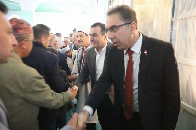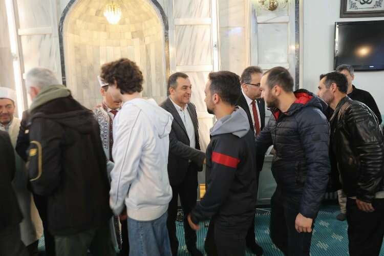 Burdur Valisi Türker Öksüz, namaz sonrası Ulu Cami içinde ve cami avlusunda İl protokolü ve vatandaşlarla tek tek bayramlaştı.
